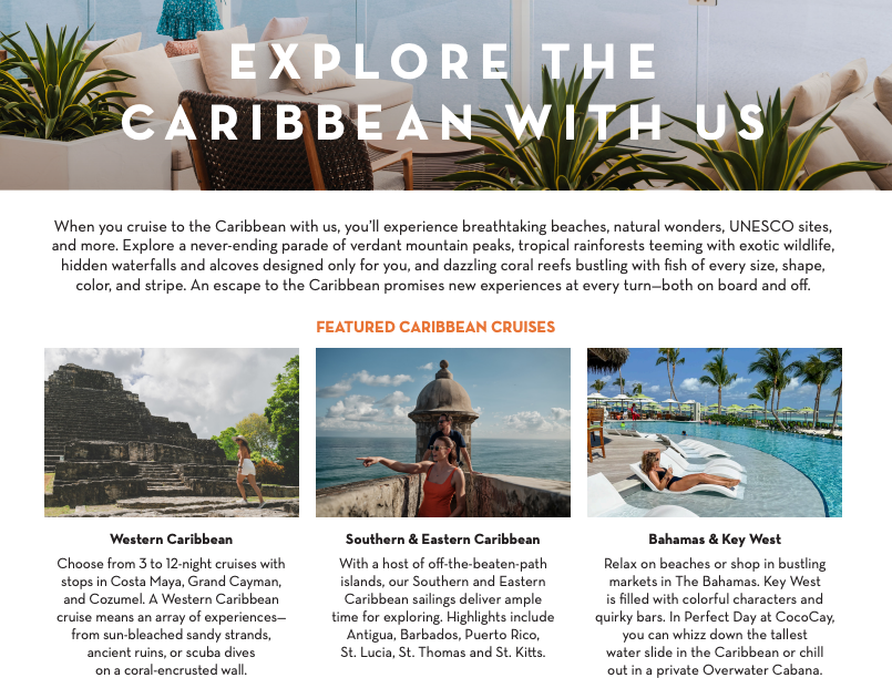 Flyer, Caribbean, Short Caribbean EXPLORE CARIBBEAN DESTINATIONS (CUSTOMIZABLE) Share a simplified resource on our Caribbean escapes to help deicde which is right for your clients